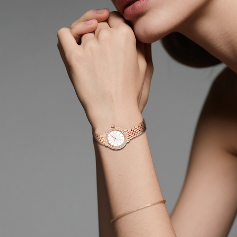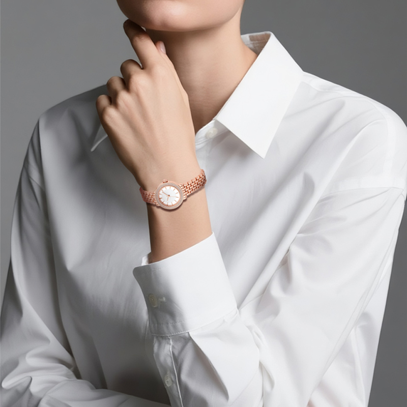 Wholesale Elegant Women’s Quartz Watch | Custom Logo Alloy Watch with Sparkling Crystals. OEM/ODM Service